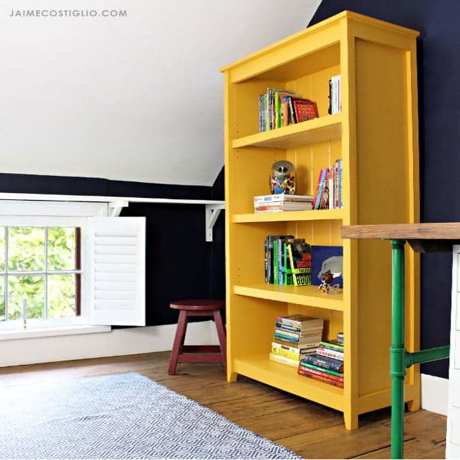 A rich, golden hue was the perfect paint color for a cottage style bookshelf.