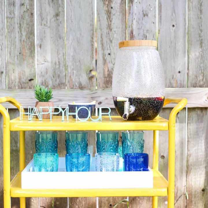 This DIY Backyard Bar Cart was totally transformed with paint and a little elbow grease.