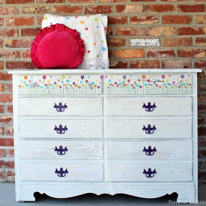 Stenciled Flowers On A White Dresser